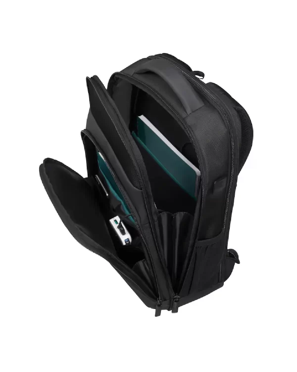 Incluye puerto USB, soporte para botella, bolsillo delantero y funda Smart Sleeve para acoplarla a una maleta. En su interior, cuenta con compartimentos acolchados para un portátil de hasta 15,6” y una Tablet de 10,5”, además de un bolsillo para powerbank y sistema Easy Pass para cables. Con asas acolchadas y correas ergonómicas, es ideal para el día a día o viajes de negocios.