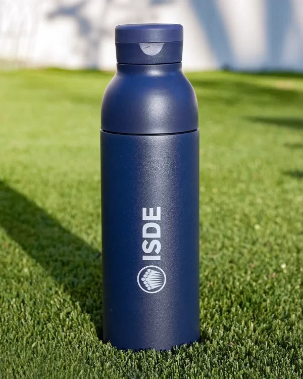 Botella de acero inoxidable de doble pared con aislamiento al vacío, pensada para acompañarte con estilo en tu día a día. Su acabado mate, tapón antigoteo y asa de silicona combinan diseño y funcionalidad.